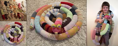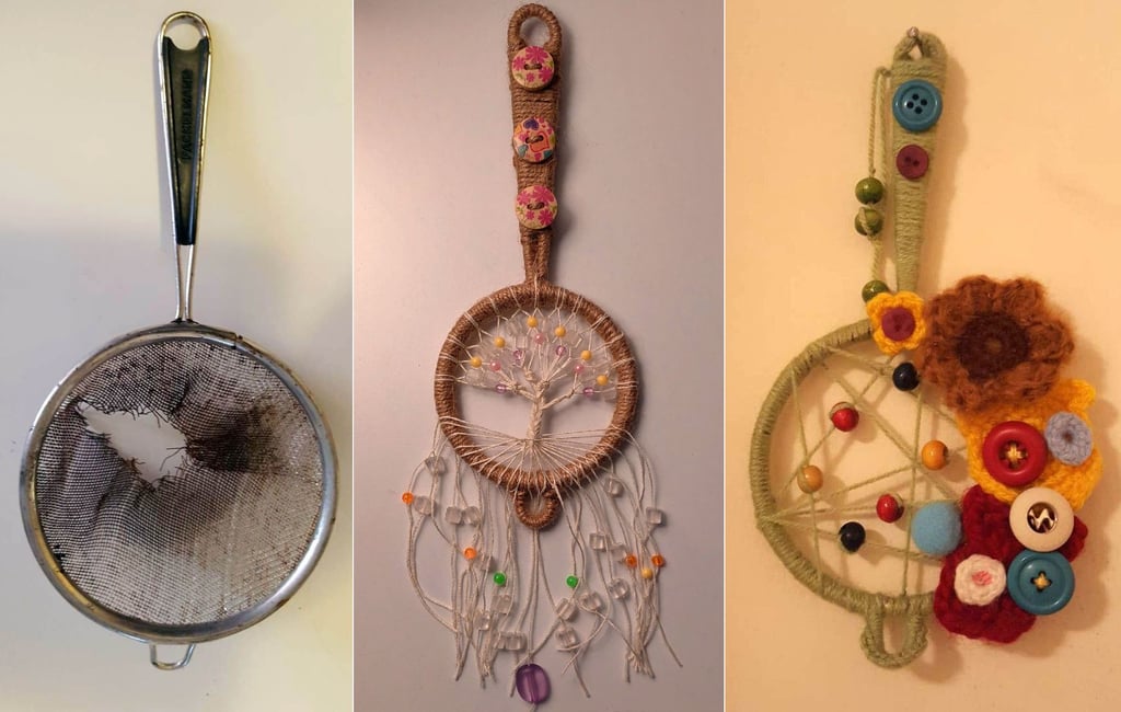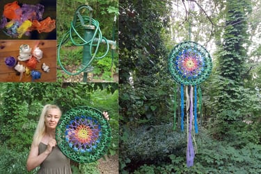 Hvatač (velikih) snova nastao reciklažom starog baštenskog creva i raznobojnih najlonskih kesa za bacanje.