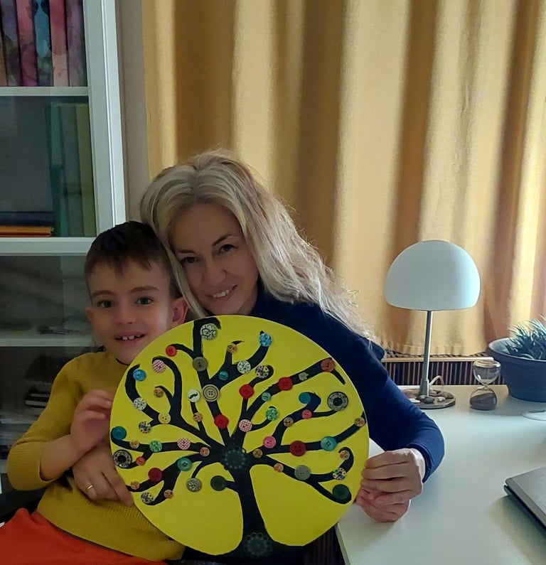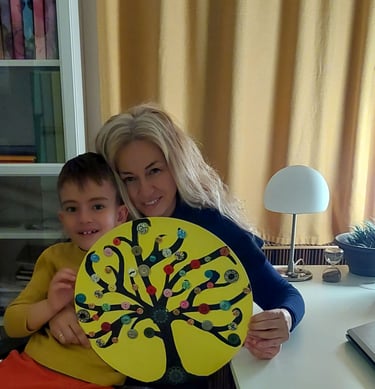 Naša zajednička igra nastala iz želje da obojimo jedan sivi dan pod temperaturom.(Akril na panelu i dugmići)